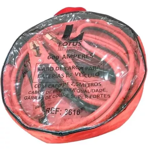 O cabo de carga para a bateria de carro é também conhecido como ?chupeta?, através dele, é possível utilizar a bateria de outro veículo para carregar baterias descarregadas. O cabo possui duas ligações uma delas vai no veículo que precisa de bateria enquanto que a outra, vai no veículo que vai doar essa bateria.