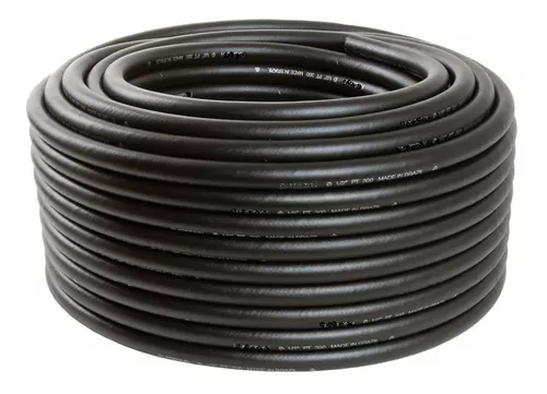 Tubo interno de PVC flexível preto, reforçada com fios de poliéster e coberto de PVC flexível preto. Fabricada em PVC com borracha nitrílica.