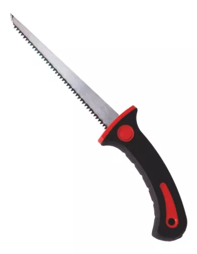 Serrote tipo faca, para uso em gesso e drywall, modelo profissional, cabo ergonômico curvo, com travas super vivas, para facilitar o corte de gessos e cartonados.